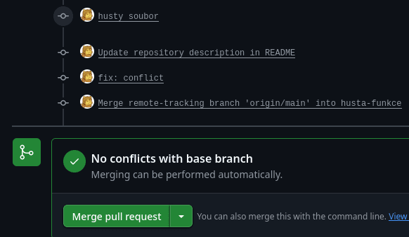 Once you click Create, after a short moment you’ll see a green checkmark. That means your changes don’t conflict with anything that’s been updated on the main branch.
